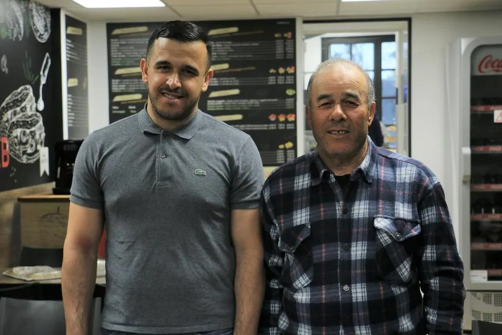 Yacine Boufenniche, 31 ans, gérant de Pita Kebab Arnage (PI.K.A), aux côtés de son père Hamid. L’établissement a ouvert au 86, avenue Nationale, à Arnage, près du Mans (Sarthe). © Ouest-France