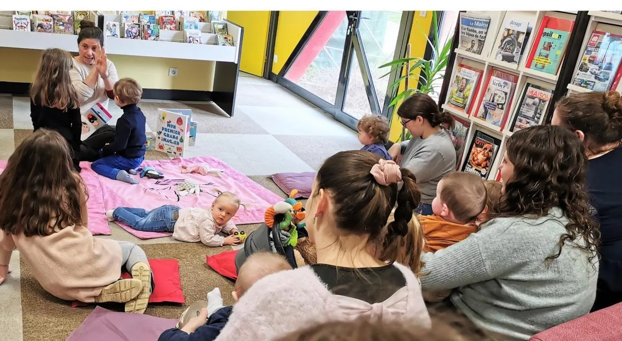 La lecture signée par Adélie Trouillet, du réseau Bébé fais-moi signe, a trouvé son public samedi matin à la médiathèque. © Le Maine Libre.