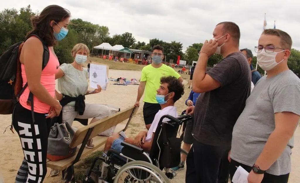 Au point 6 avec Sabine, Dylan, Paul et Romain, de l’association Apajh d’Allonnes, accompagnés de Camille, éducatrice, réfléchissent à l’énigme posée. © Le Maine Libre