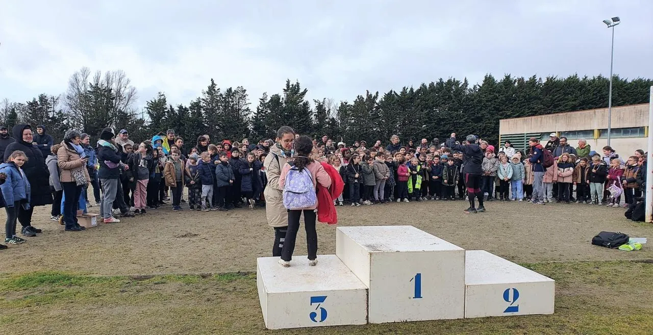 Leur initiative a bénéficié du plein soutien de la section athlétisme de l’Omnisports : 210 élèves des écoles élémentaires de la commune ont fait cross commun au stade. Sandra Linais, enseignante de CM2 à l’école Renoir, aux manettes de cette sortie sportive avec Marion Verglas, la directrice, et neuf enseignants, souligne :  Nous avions neuf classes de CE1-CE2 et CM1-CM2, dont trois classes venues de l’école Gérard-PhilipeÂ