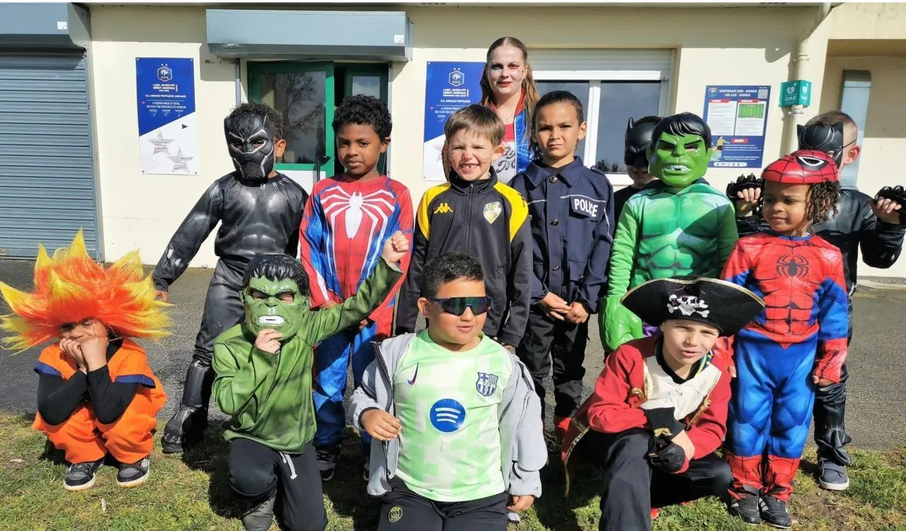 Entraînement peu banal mercredi dernier pour les jeunes U7 de l’Usap, le club de foot de l’Omnisports d’Arnage. À l’invitation de leur coach, Morgane Rebillard, pour faire leur carnaval à eux, ils avaient troqué le maillot de foot et le short pour enfiler des déguisements de super-héros. Parmi eux, on comptait deux Hulk, deux Spiderman, un Dragon Ball, trois Batman, une policière, un pirate… À l’issue de cet entraînement déguisé, les jeunes joueurs ont eu droit à un copieux goûter, très apprécié.