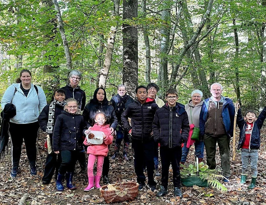 La sortie en forêt a été fructueuse pour ce groupe familial : les paniers sont remplis de cèpes. © Maison des habitants