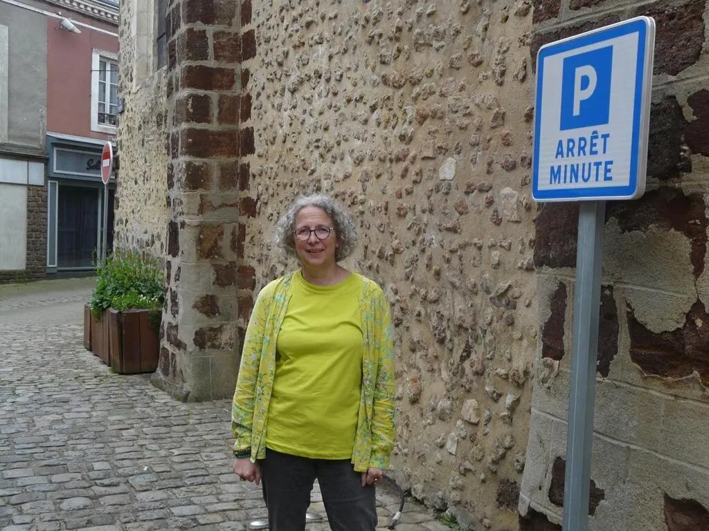 Lea Duval devant l’un des onze arrêts minute que compte la ville. © Le Maine Libre