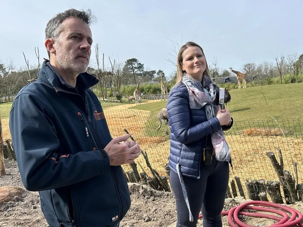 Cyril Hue, vétérinaire, et Céline Talineau, directrice du zoo de La Flèche (Sarthe), ont présenté les nouveautés du parc, accessibles au public au mois de juin prochain. © Ouest-France
