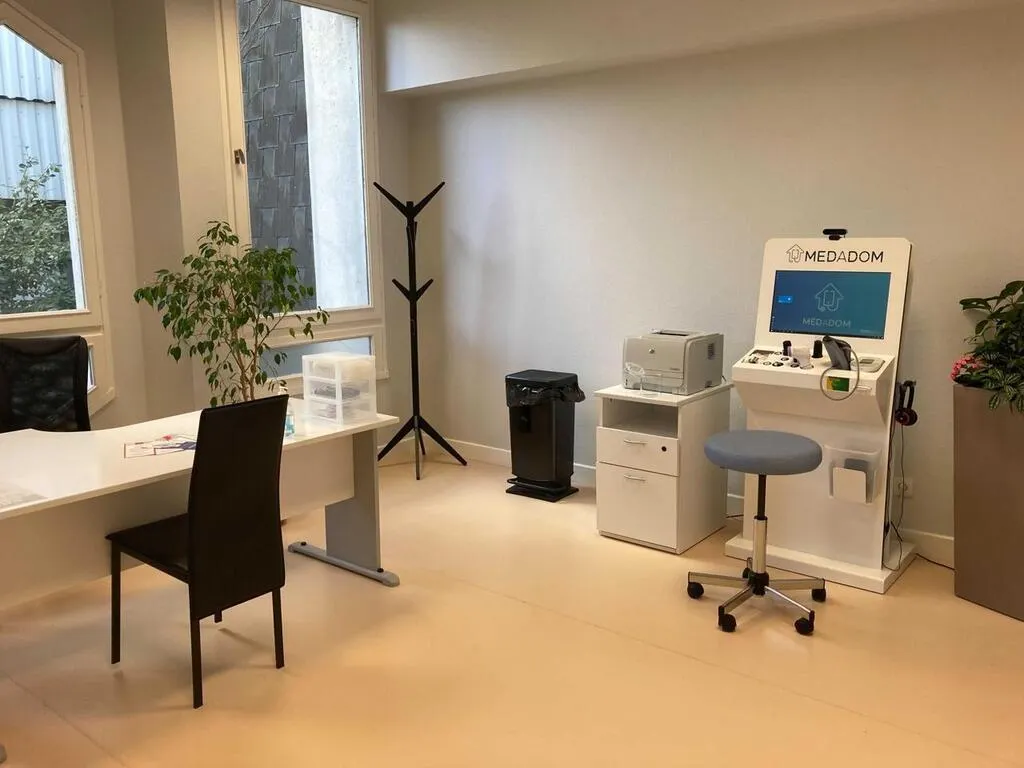 Une borne de téléconsultation de ce type sera installée à partir du 15 décembre dans l’ancienne cantine d’Asnières-sur-Vègre près de la mairie. © Photo d’illustration/Medadom