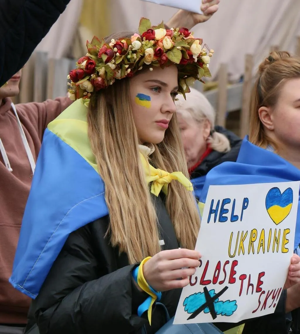 Cette jeune femme réclame une « zone d’exclusion aérienne » au-dessus du territoire de l’Ukraine. OUEST-FRANCE