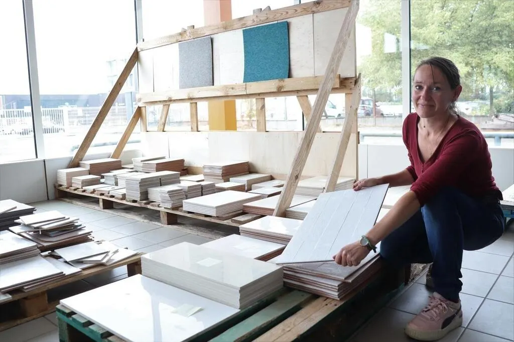 Aurore Godard, chargée de projet à Envie Maine, dans l’espace showroom de la « matériauthèque » qui s’ouvre le mercredi 6 septembre, route d’Allonnes, au Mans. © Ouest-France