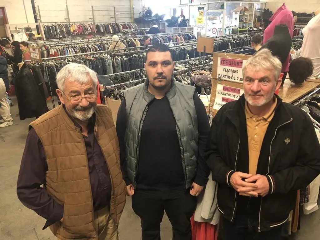 Maheiddine Guerrar, adjoint au responsable du site Le Mans nord, Reza Hayati, compagnon, et Jean-Michel Houdbine, responsable de communauté itinérant, devant le magasin de la zone nord du Mans, actuellement en liquidation de stock. © Le Maine Libre