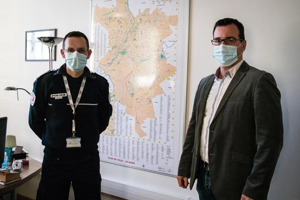 De gauche à droite, le commissaire divisionnaire Emmanuel Morin, n° 1 de la police en Sarthe, aux côtés du commissaire Stève Gillet, chef de la sûreté départementale. © Ouest France