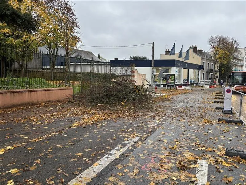 Les premiers coups de tronçonneuses ont commencé avenue Bollée, au Mans (Sarthe), ce mardi 19 novembre 2024 au matin, dans le cadre du déploiement des Chronolignes.