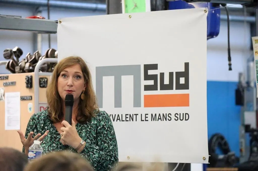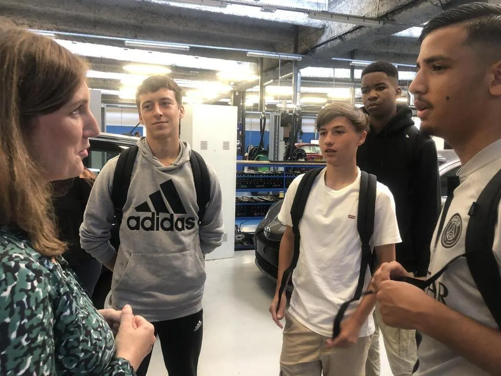 Carole Grandjean, ministre de l’Enseignement professionnel, s’est entretenue très brièvement avec des élèves de seconde du lycée sud du Mans. © Ouest-France
