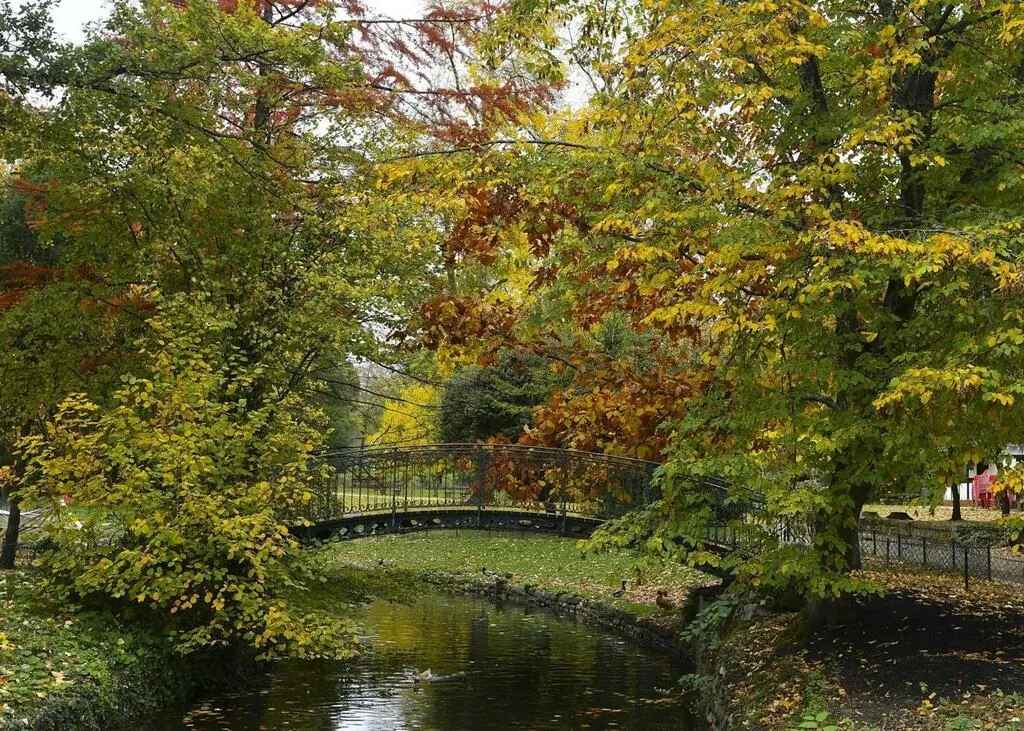 La passerelle qui relie l’îlot du Jardin des plantes à la terre ferme duquel sont observables poissons, canards et même cygnes. © Archives Le Maine Libre