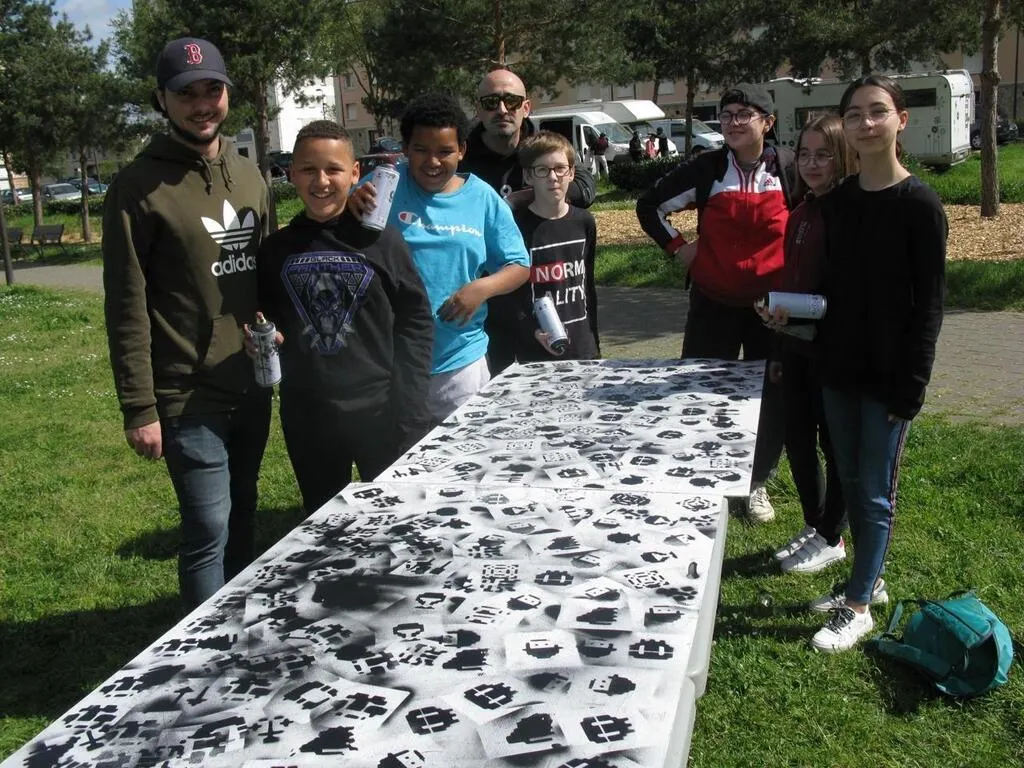 À la fin de l’après-midi, le résultat des jeunes, initiés au pochoir par le street-artist Lapin Blanc au Mans, était bluffant ! © Ouest-France