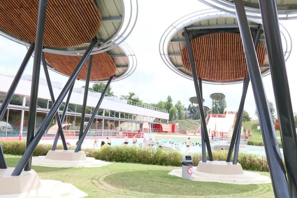 Face aux bassins extérieurs, des parasols photovoltaïques. © OUEST-FRANCE.