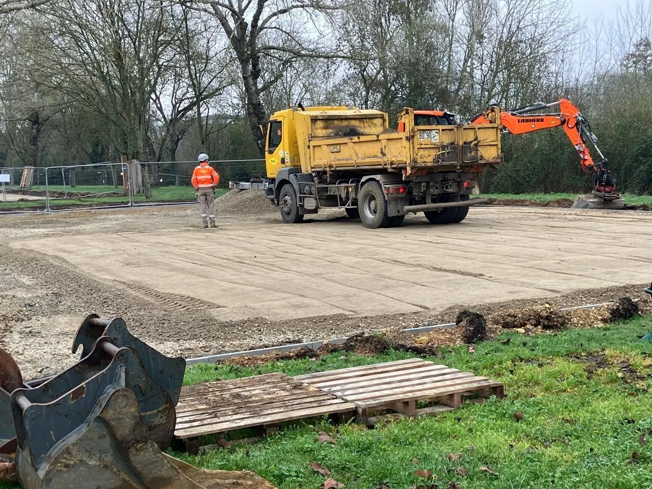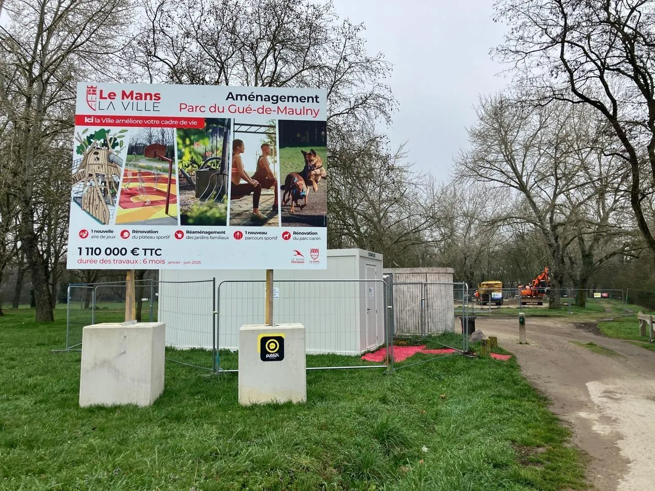 Dans le parc du Gué-de-Maulny, au Mans, les travaux d’aménagement sont visibles. Ils doivent durer six mois. © Ouest-France