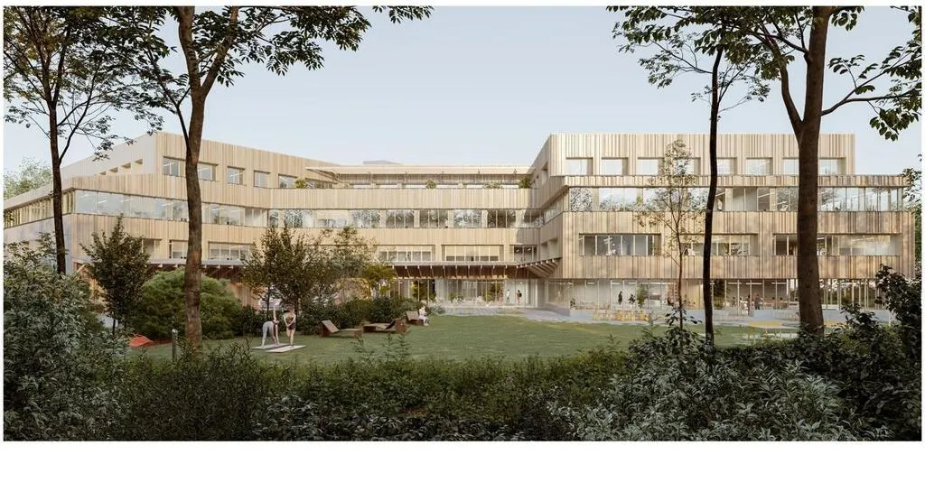 Le bâtiment aura une forme de Y : trois volumes réunis par une charnière. Au total, 10 000 m2 auxquels s’ajoutent 2 000 m2 d’espaces extérieurs. Pour s’intégrer dans son environnement, le bâtiment aura une « façade urbaine » d’un côté, recouverte de zinc patiné. Et une autre, « nature », avec un bardage en bois. Le bâtiment sera certifié haute qualité environnementale avec le label biosourcé. Outre le soin apporté à son orientation, le bâtiment sera doté d’une ventilation naturelle nocturne pour le refroidir.
