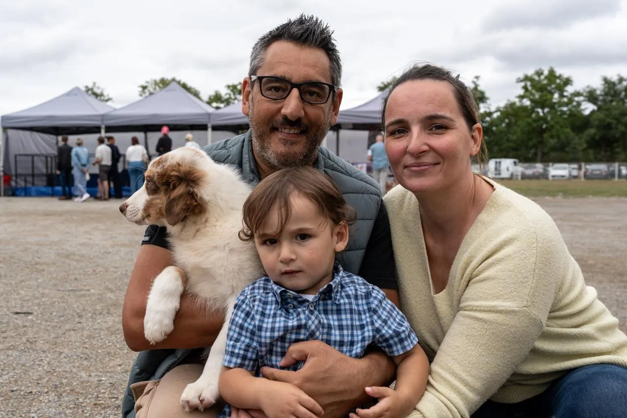 Ils sont arrivés à trois et sont repartis à quatre. Julie, Michael et Arthur n’ont pas résisté au regard de ce berger australien. © Le Maine Libre – Xavier SARRAT