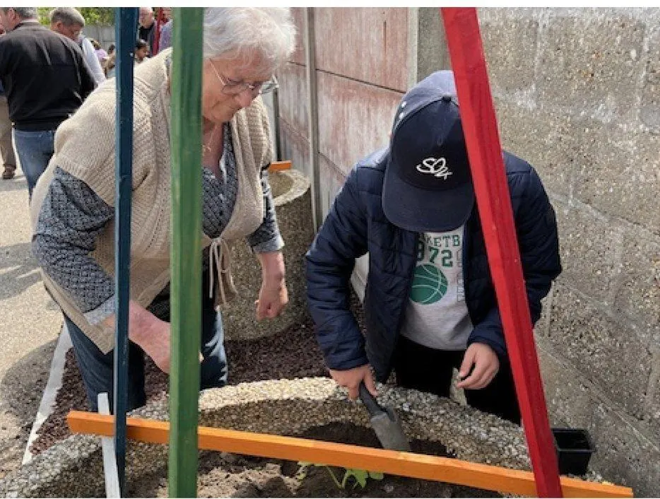 Avec l’animation Plante ta graine à la cantine, une trentaine d’enfants volontaires ont pu planter des plants de butternut, vendredi, dans la cour de la cantine municipale. Elle était proposée par le tiers-lieu Les ateliers de demain, en collaboration avec le Jardinier sarthois. Les récoltes de cet atelier pourront être cuisinées par l’équipe de restauration lors de la semaine du goût. © Ouest-France