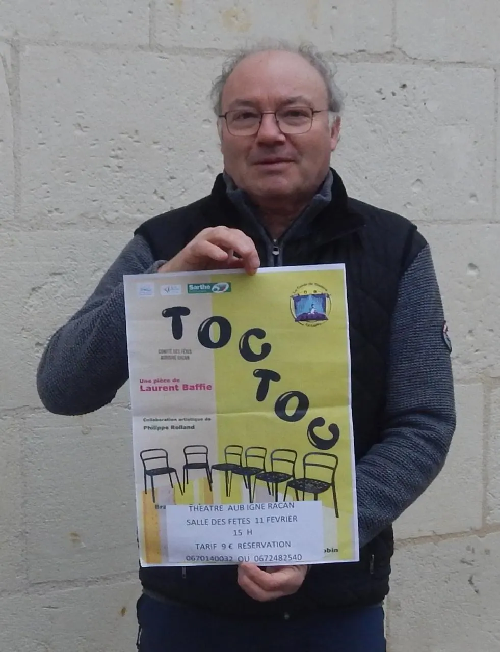 Le comité des fêtes d’Aubigné-Racan propose une représentation par le Cercle du théâtre du Lude, dimanche 11 février à 15 heures, salle polyvalente d’Aubigné-Racan. Les comédiens joueront une pièce de Laurent Baffie « Toc toc ».