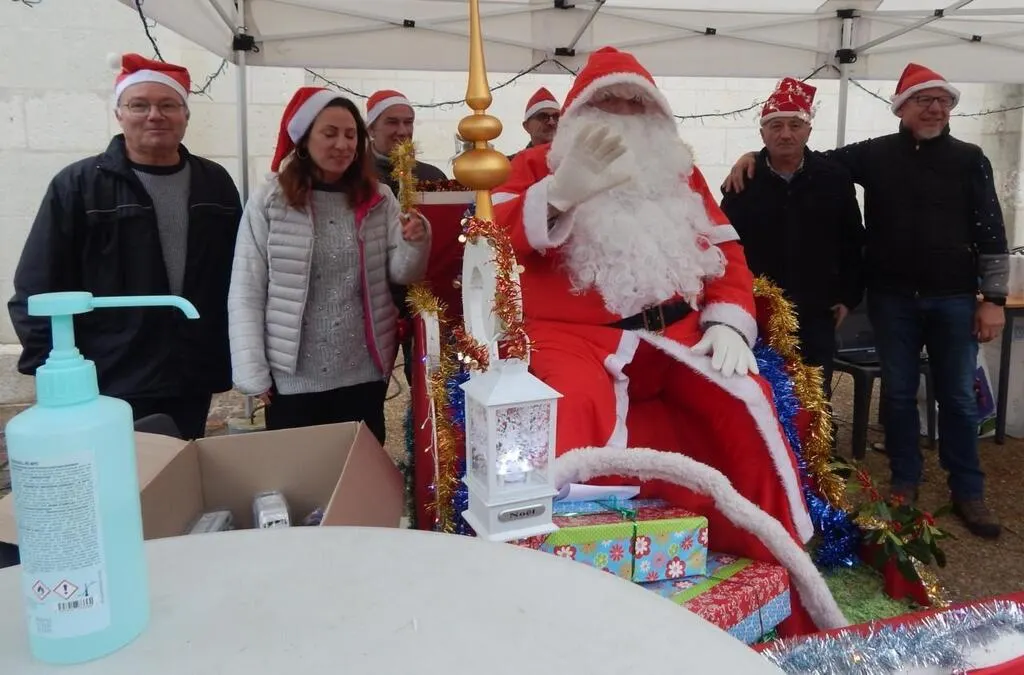 Le Père Noël entouré par les bénévoles du comité des fêtes. © Le Maine Libre