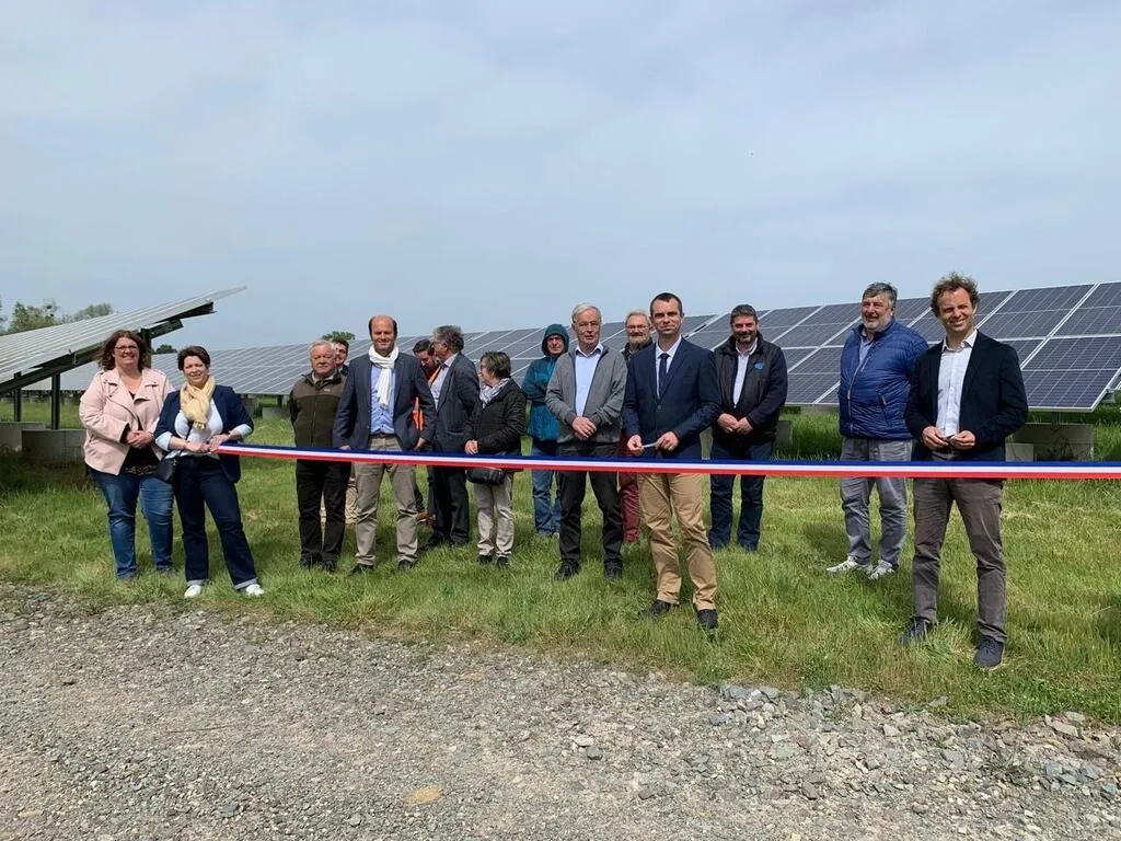 Les élus ont inauguré, jeudi 28 avril 2022, la centrale solaire du Gravier ou 14 000 panneaux ont été installés pour produire 6 millions de kWh par an. © Ouest-France