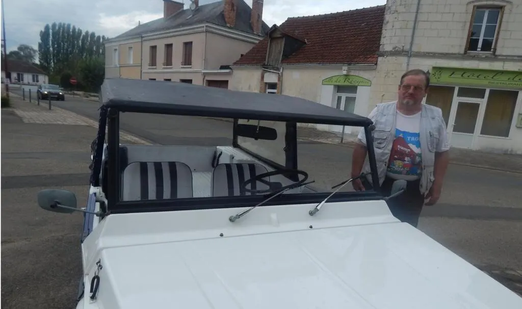 Depuis une bonne année, Yannick Guillaume et un copain retapent une Méhari, marque Citroën de 3 CV, dans son garage.  J’ai acquis cette Méhari auprès d’un particulier du côté de Tours. À l’origine elle était orange avec un châssis complètement pourri. Il a fallu trouver des pièces d’origine et effectuer un nettoyage complet »,