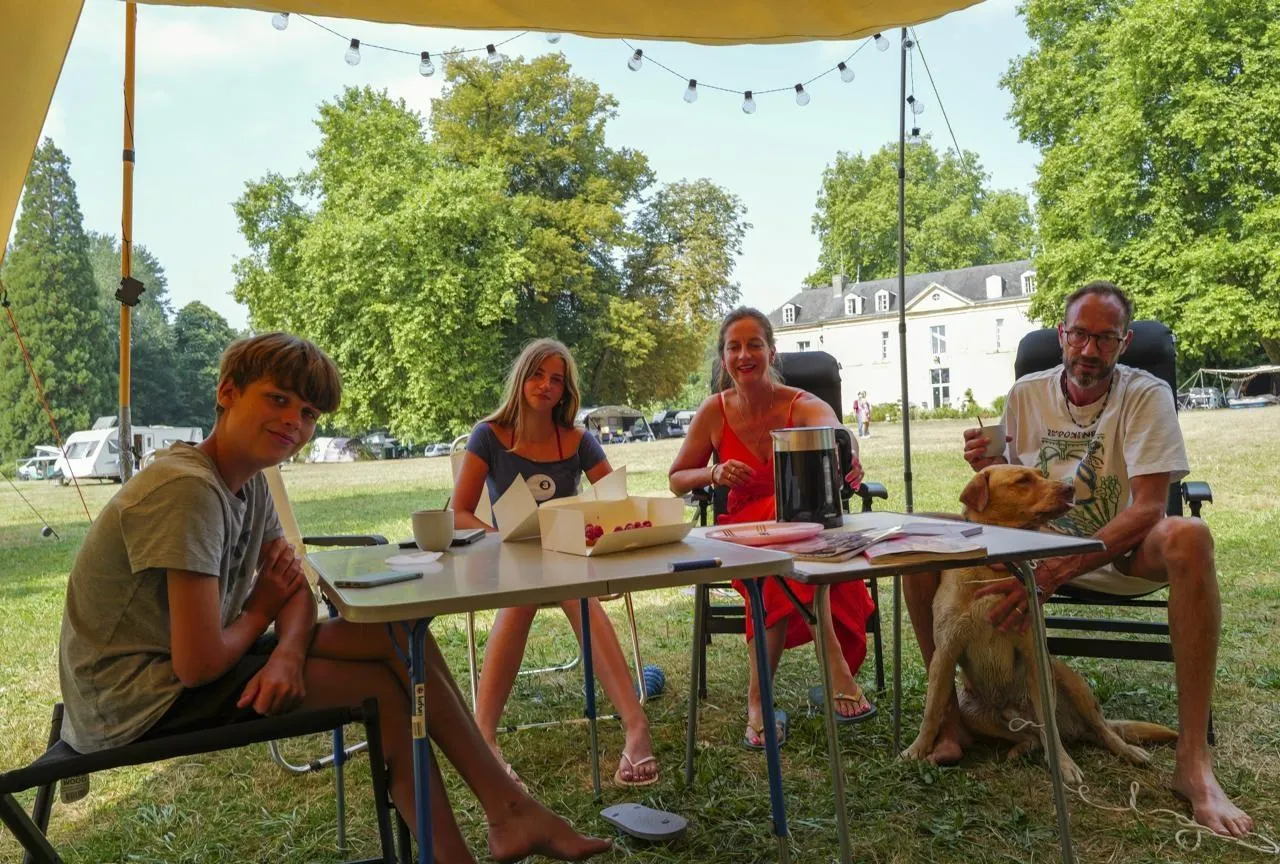 À l’image de cette famille néerlandaise, le camping silléen attire une clientèle étrangère qui apprécie la beauté et l’esprit du lieu aménagé dans le parc du château de Chanteloup. © Le Maine Libre – Denis LAMBERT
