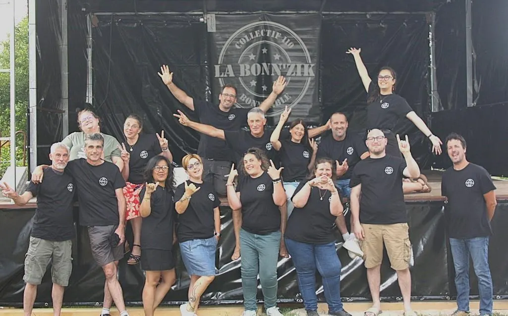 Toute l’équipe du Collectif 110 n’est pas présente sur l’image, mais cette photo saisit parfaitement l’énergie et la cohésion qui portent La Bonn’Zik. © Le Maine Libre