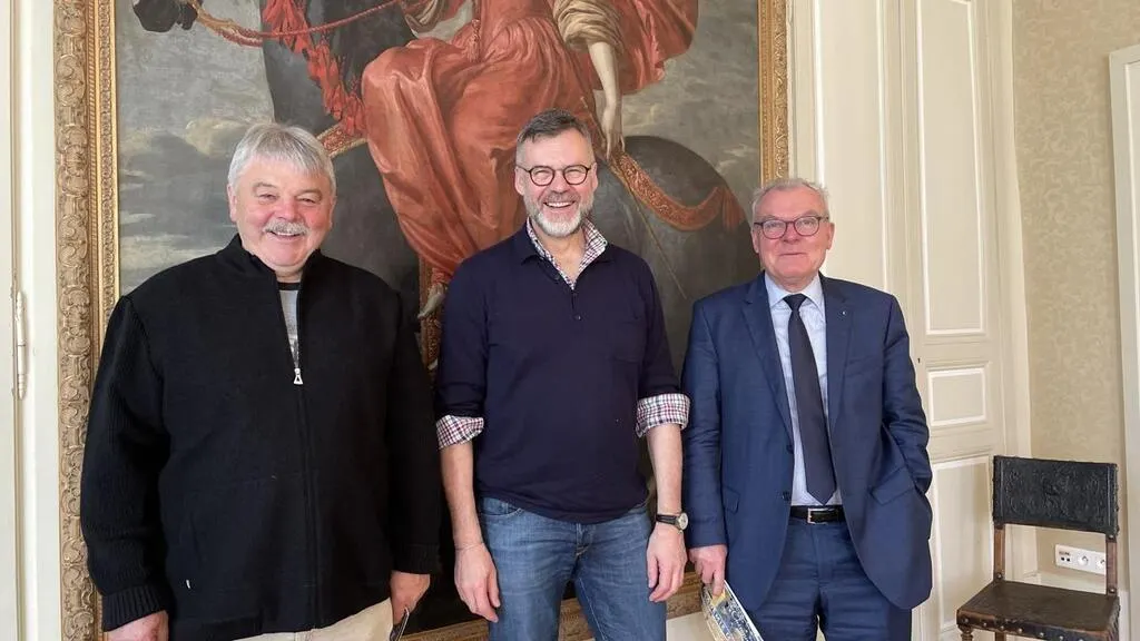 (De gauche à droite) Jean-Yves Hermeline, maire de Saint-Aubin-des-Coudrais, Raphaël Sikorski, directeur du Festival de la Chéronne, et Didier Reveau, maire de La Ferté-Bernard, ont hâte que le festival démarre. © Le Maine Libre