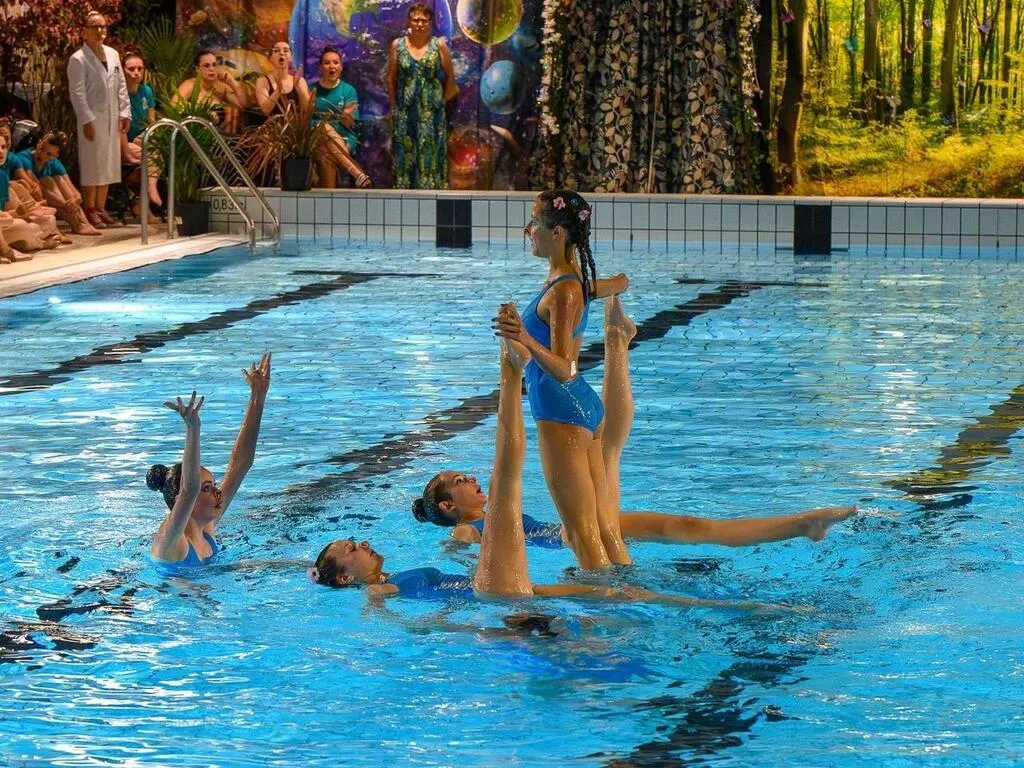À la piscine de Coulaines (Sarthe), les 27 et 28 juin 2025, trente naïades feront découvrir au public les mythologies au travers de « Synkros » un vrai spectacle d’une quinzaine de tableaux au cours de deux soirées.