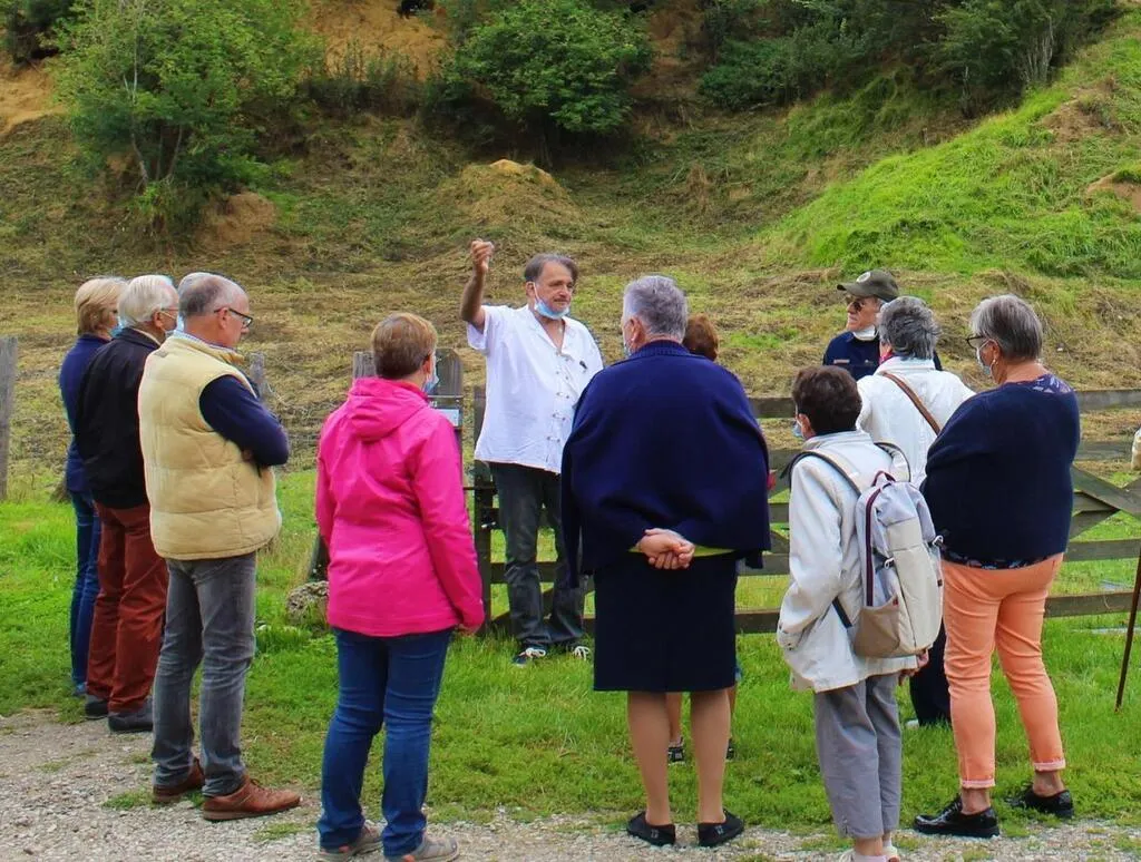 Ce bâtiment est doté d’un caquetoire. C’est « un abri couvert doté de bancs qui permettait aux paroisiennes de se rencontrer en sortie de messe et de caqueter entre elles », affirme le maire. Les randonneurs se sont ensuite rendus à la butte féodale du Castrum Piretti culminant à 98 m de haut, et permettant de porter un regard différent sur des sites paysagers.