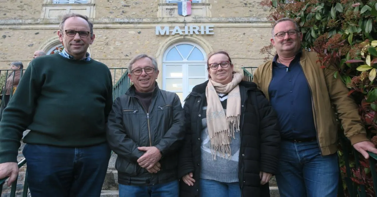 De gauche à droite. Le maire Antoine d’Amécourt et ses adjoints Michel Martinucci, Sandrine Heurtebise et Pascal Heurtebise ont été élus lors du conseil d’installation, ce vendredi 20 mars. © Ouest-France