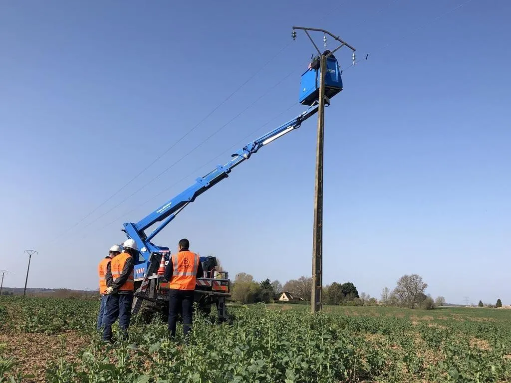 Pendant près de deux semaines, les agents d’Enedis vont intervenir sur 6,2 km de réseau aérien moyenne tension dans la commune d’Avoise. © Photo : Ouest-France