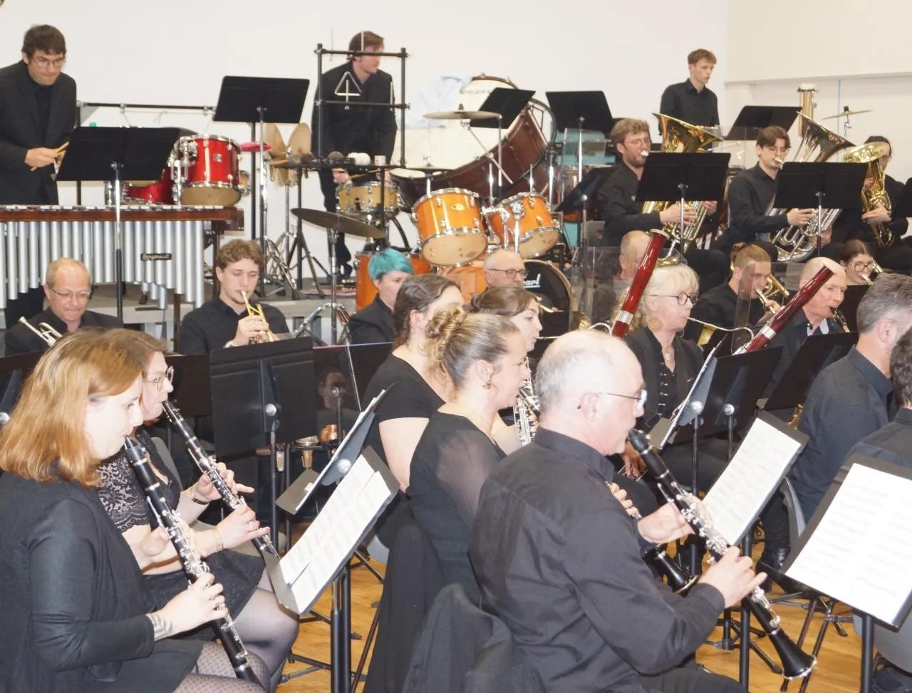 L’imposant Orchestre d’harmonie de la Sarthe a donné une prestation, samedi soir, dans la salle Miche-Lalos sur le thème de la littérature jeunesse. © Ouest-France