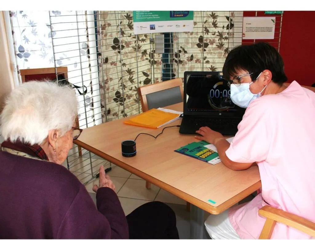 Un atelier où une résidente doit reconnaître des sons. © Le Maine Libre