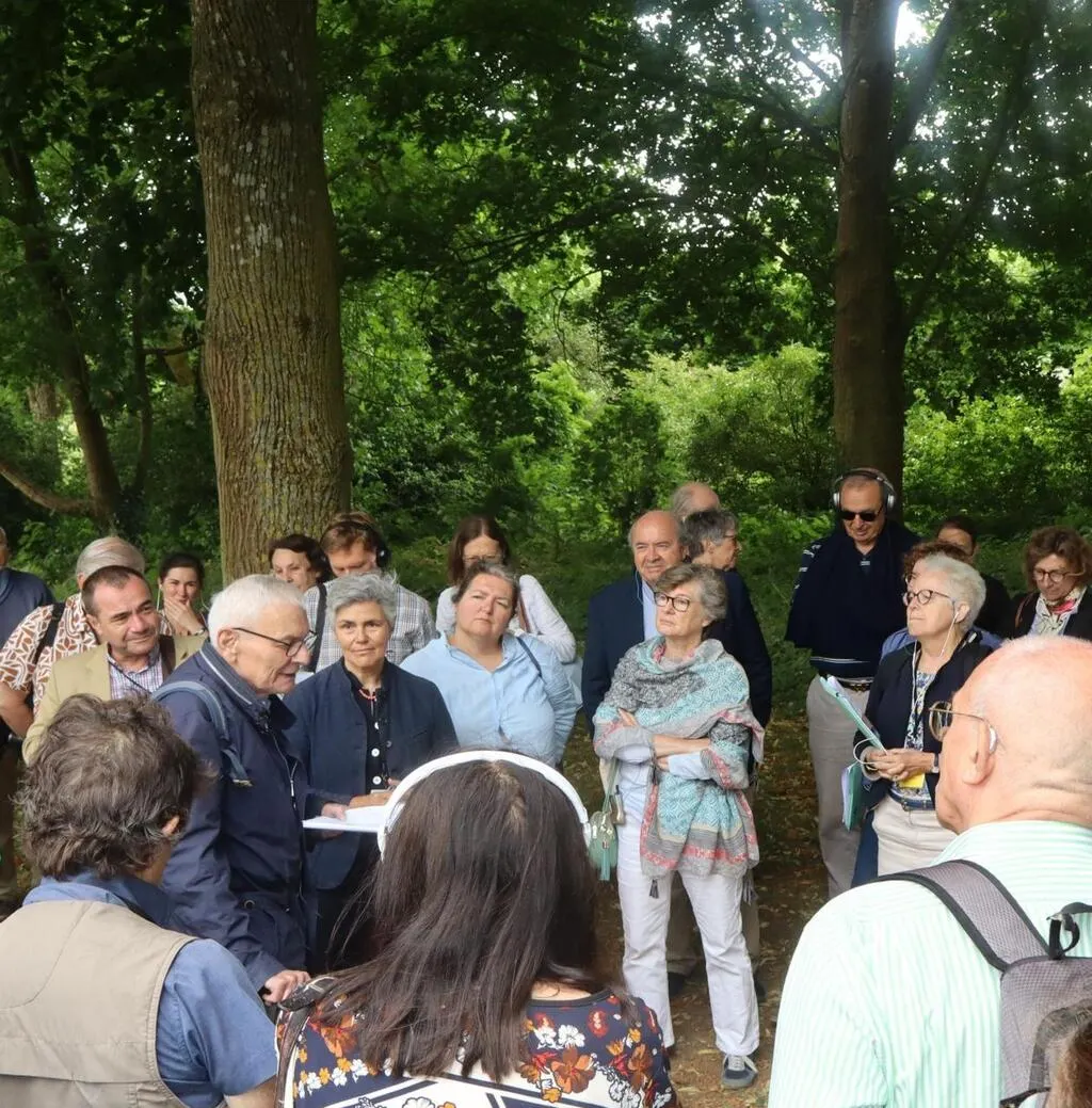 Les membres de la Société française d’archéologie, écoutent religieusement Jean Mesqui. © Le Maine Libre
