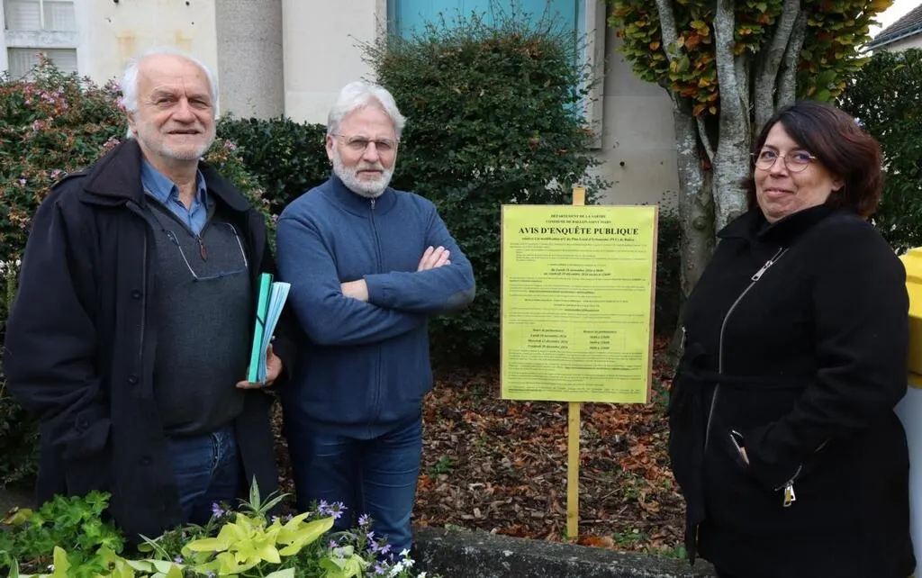 Thierry Lambert, commissaire enquêteur, Maurice Vavasseur, maire de Ballon-Saint-Mars et Sabrine Morel en charge de l’urbanisme. © Le Maine Libre