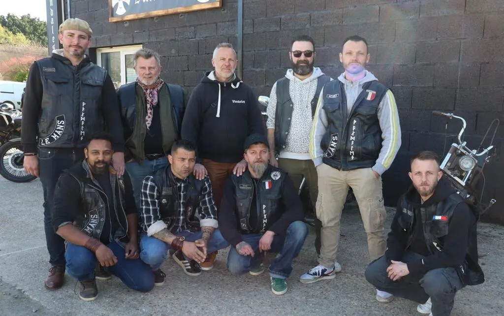 Ces amis, passionnés de moto, portent tous le même blouson cuir avec l’emblème des Vandales. © Le Maine libre