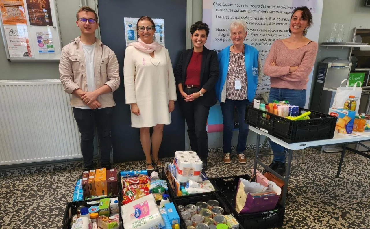 Pour faire vivre ce service essentiel, La Petite Boutique s’appuie sur une équipe de trente bénévoles accompagnant la salariée du centre social dans les missions quotidiennes : accueil, mise en rayon, gestion des stocks et encaissement. C’est l’une d’entre eux, Patricia Chartrain, ancienne salariée de l’entreprise Colart (anciennement Lefranc Bourgeois) et bénévole engagée, qui a permis de créer un pont solidaire entre ses anciens collègues et l’épicerie. Touchée par cette initiative locale, l’entreprise, implantée au Mans, a choisi de s’engager concrètement en organisant une collecte interne de produits au profit de l’épicerie. Elle s’est tenue du 13 au 17 octobre, au sein des locaux de Colart. Patricia Chartrain s’est rendue sur place pour présenter l’action et recueillir les dons.