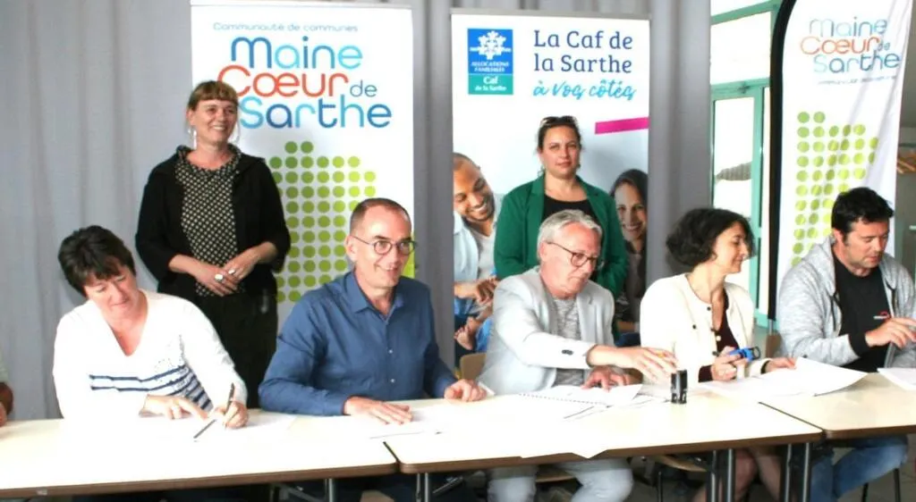 Les différents acteurs signent la convention territoriale. © Le Maine Libre