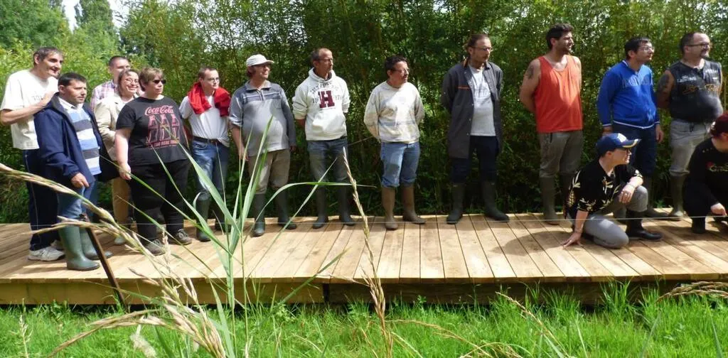 L’atelier menuiserie a, lui, été chargé de la réfection d’une partie du platelage permettant l’accès au cÅ“ur du marais ainsi que de la signalétique.  Vous avez su répondre à la demande comme une entreprise classique, mais dans des conditions de développement de compétences plus enrichissantes pour vous tousÂ