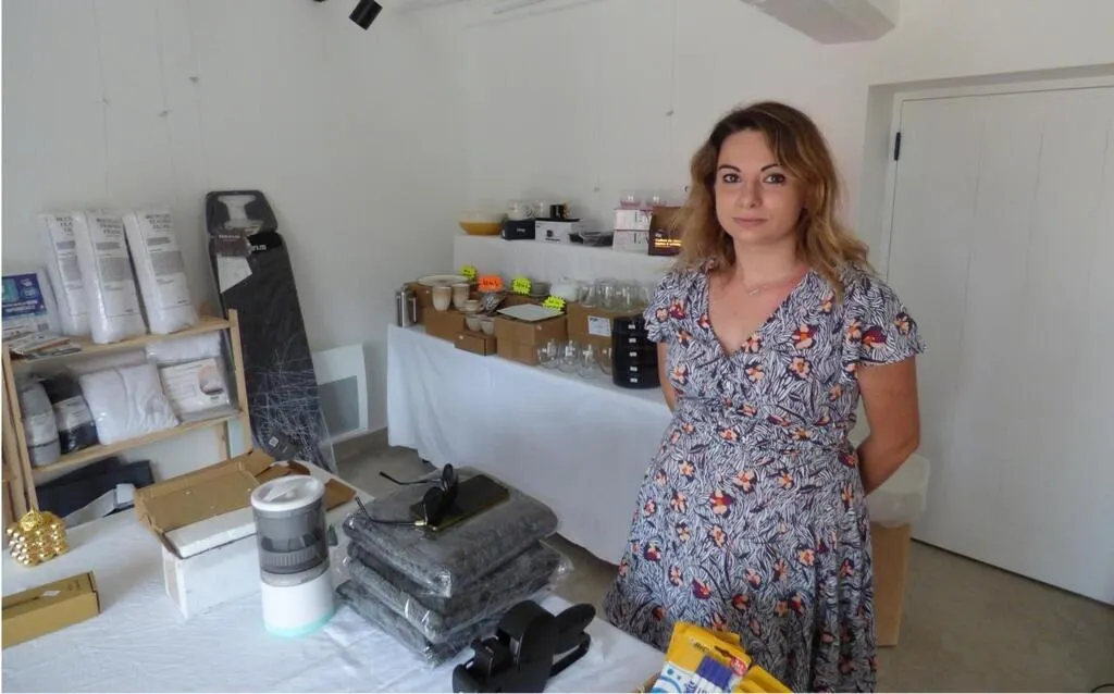 Claire Gatinet, cogérante de l’entreprise F.G. Destock, accueille, jusqu’à dimanche, les clients dans les locaux de la nouvelle boutique éphémère de Bazouges. © Ouest-France