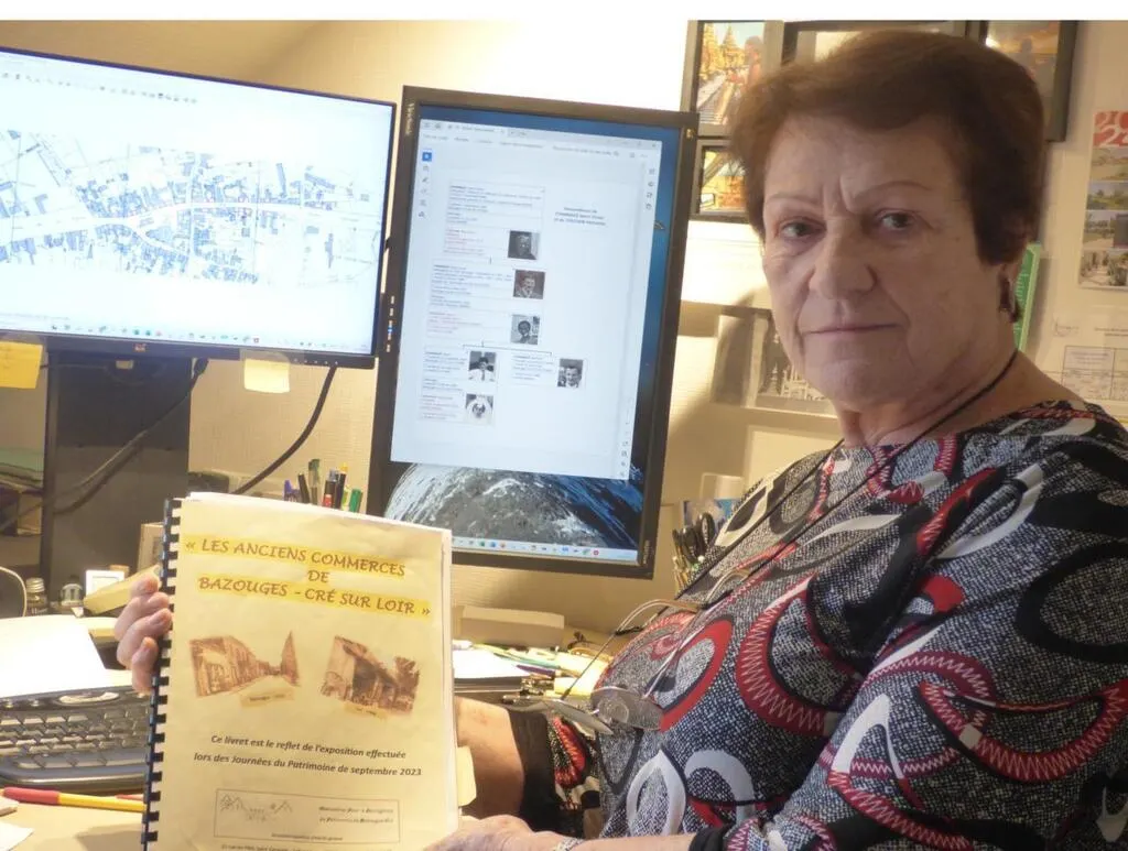 Michelle Sadoulet, présidente de l’association, apporte les derniers correctifs au livre qui fait revivre les commerces de la commune sur près de deux siècles. © Ouest-France