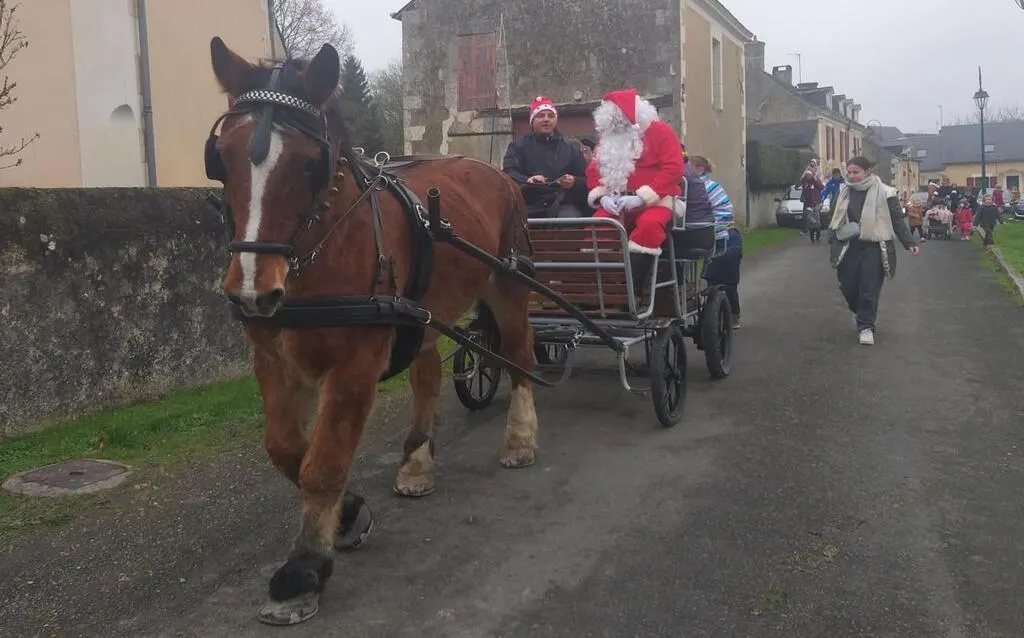 Le père Noël a parcouru la commune en calèche. © Le Maine Libre