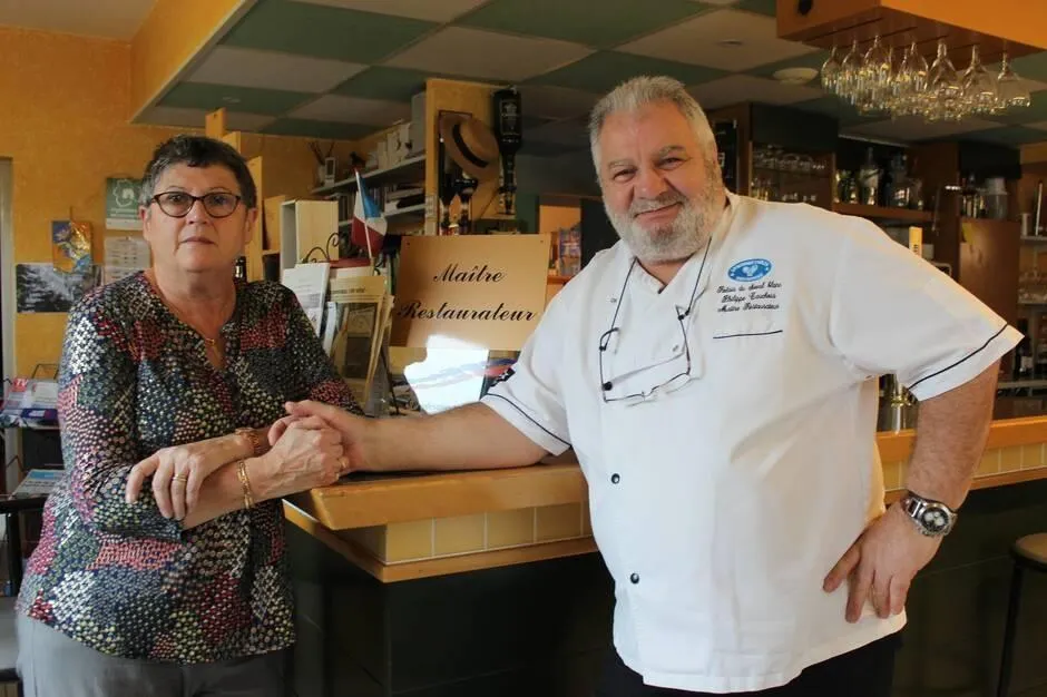 Évelyne et Philippe Cauchois, en 2017, lors de la mise en vente de leur hôtel-restaurant l’Auberge Relais du Cheval Blanc. © Archives Ouest-France
