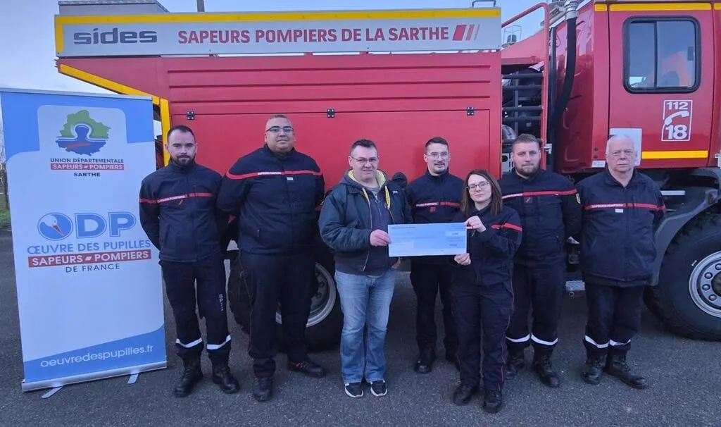 Vendredi dernier, au centre de secours de Beaumont-sur-Sarthe, Stéphane Marcq est venu remettre un chèque de 600 € à destination des orphelins des sapeurs-pompiers.