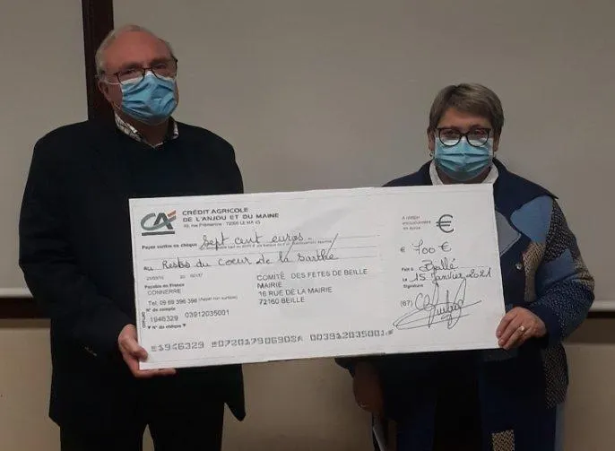 Le comité des fêtes de Beillé a tenu son assemblée générale et en a profité pour remettre les bénéfices de la vente de tartiflette aux Restos du Cœur.