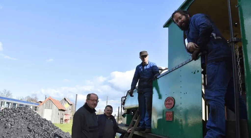 Des bénévoles préparent la loco à vapeur pour dimanche. © Le Maine Libre