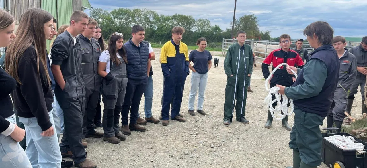 Dans le cadre de la sécurité au travail, les élèves de seconde assistent à une démonstration de contention des animaux en sécurité. © Le Maine Libre