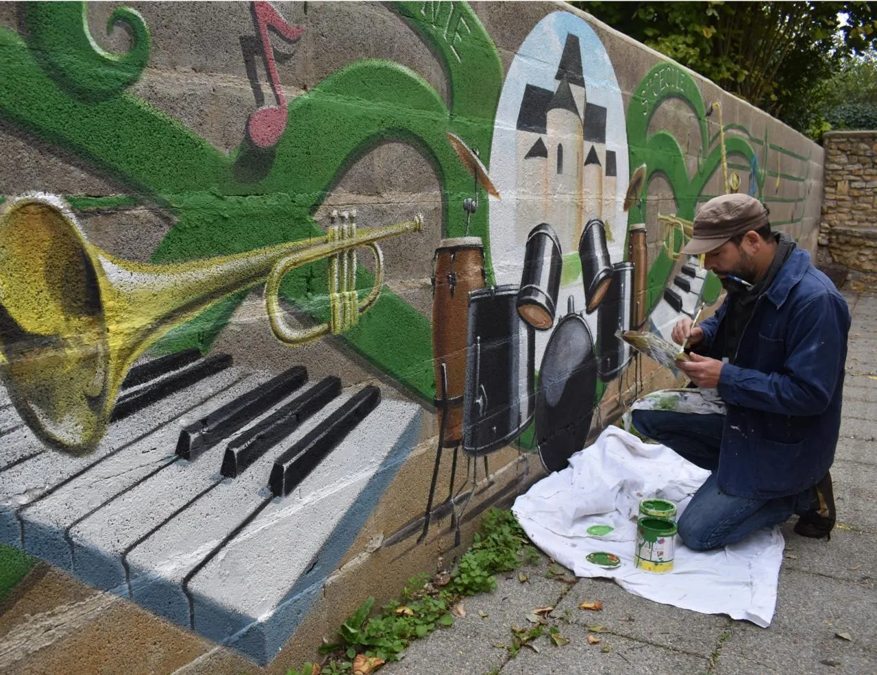 Originaire de Conlie, où une partie de sa famille réside toujours, l’artiste peintre illustrateur Régis Bezannier était à Bernay-Neuvy-en-Champagne. Sa mission, transformer un mur près de la salle Pierre Moreau en œuvre d’art.